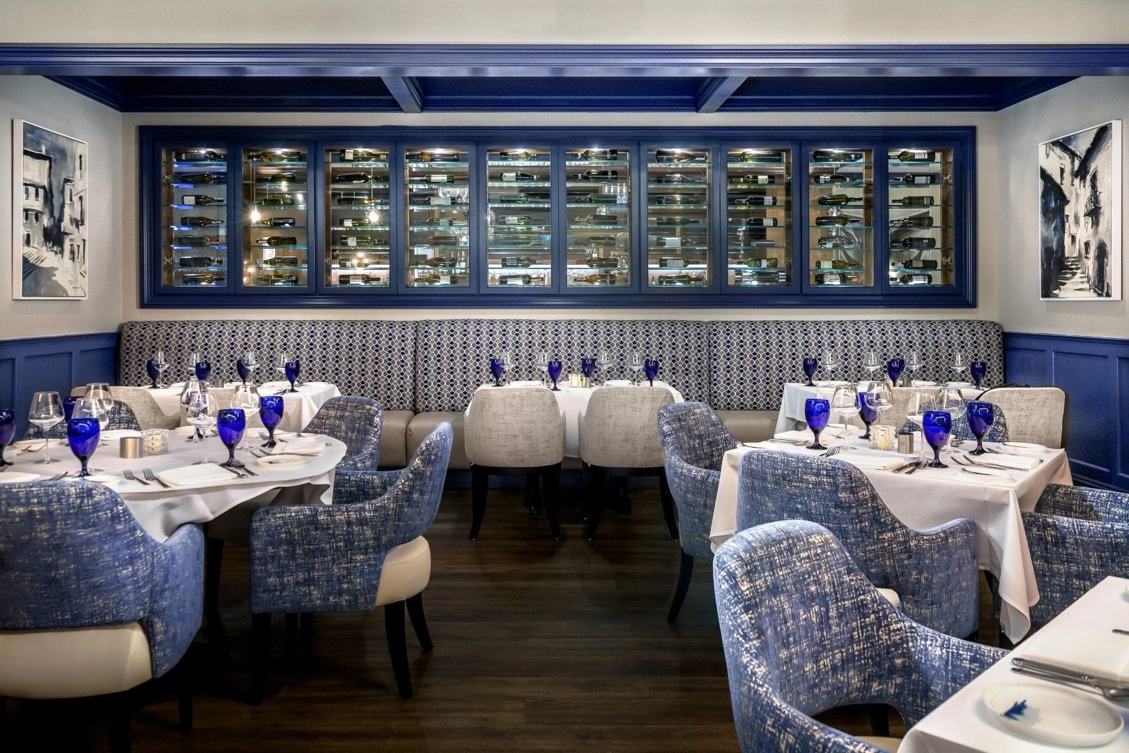 This redesign of the Amore Ristorante main dining room gave one of Naples' most authentic, historic restaurants a more modern feel with a modern color scheme while still preserving its cozy atmosphere.